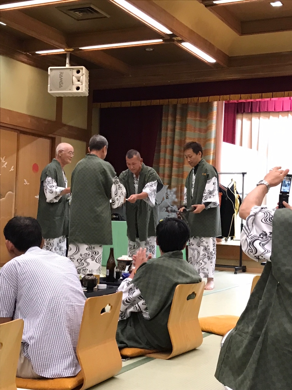名物黒豚料理やさつま焼酎をいただきながらビンゴゲームで盛り上がる中