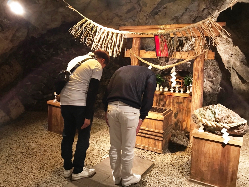 金山採掘坑跡の坑内にあるパワースポットでもある「薩摩開運神社」にて